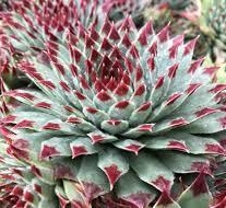 Le contraste entre les feuilles bleu-vert et les pointes pourpre font de cette joubarbe une variété originale. Origine : France |