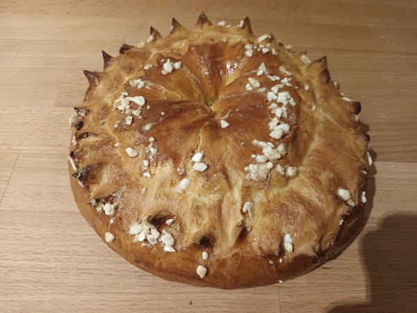 Fourré crème d'amandes Blé, œufs, sucre, sel, beurre, amande 8 personnes... lire la suite Origine : FRANCE - LA BAZOUGES DE CHEMERE (53) |